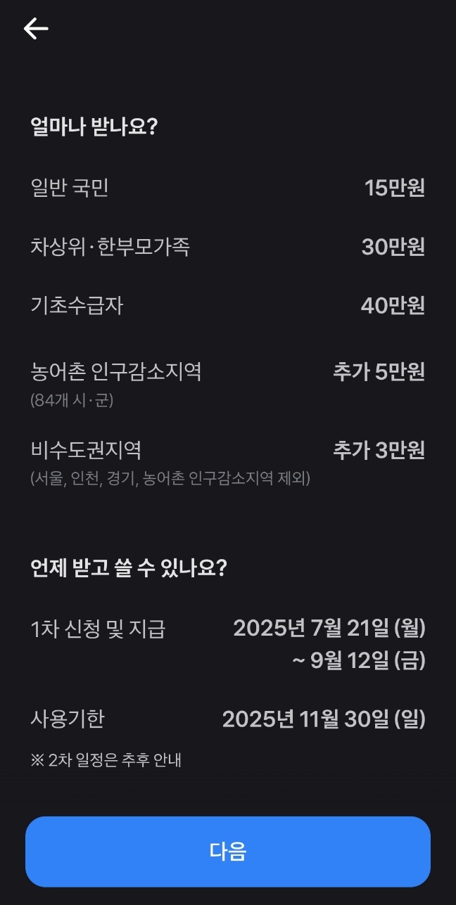 - 2차 추가 지급 신청 : 2025년 9월 22일 (월)부터 별도 공지 예정