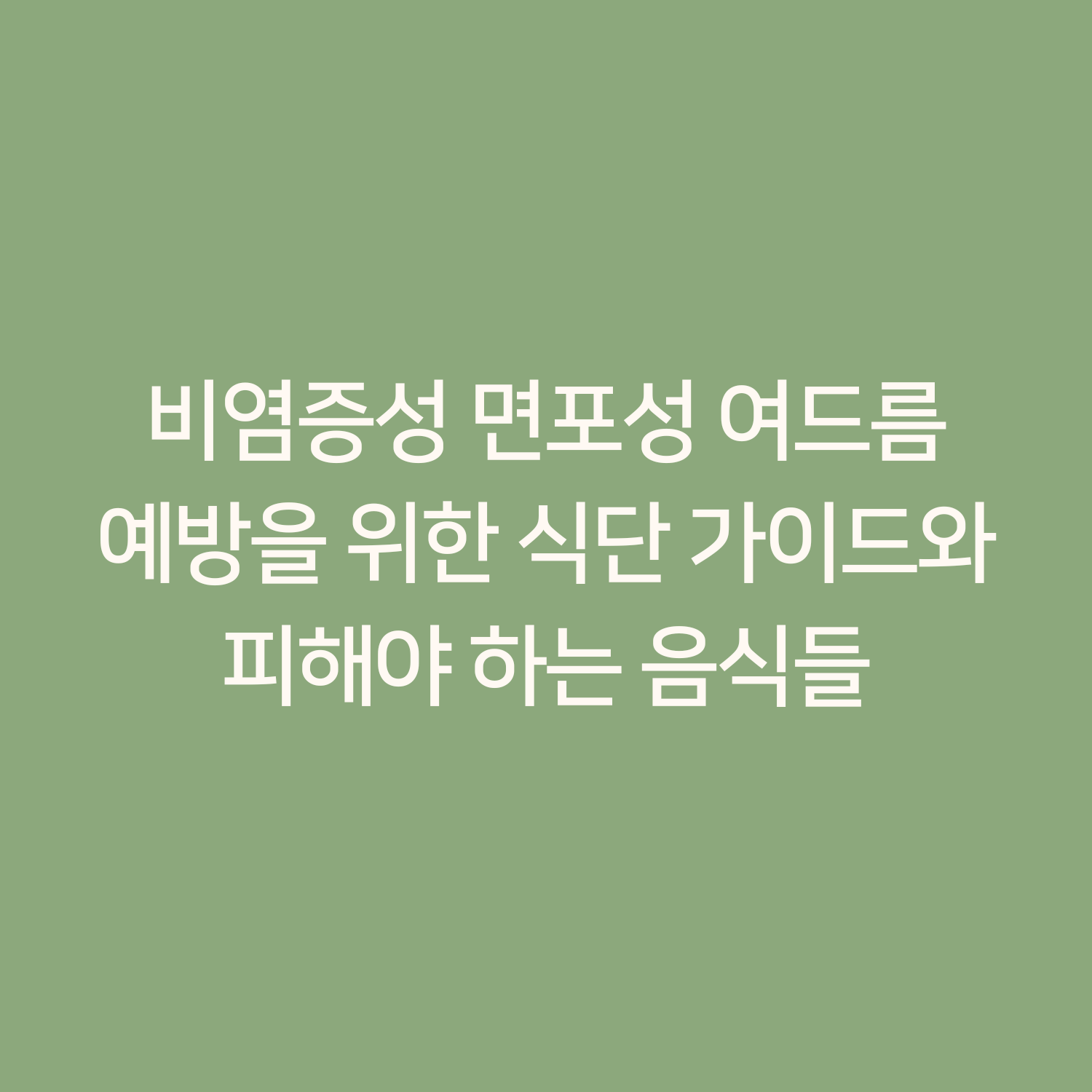 비염증성 면포성 여드름을 예방하기 위해서는 피부 건강에 좋은 식단을 유지하는 것이 중요합니다. 항산화 식품, 오메가-3 지방산, 건강한 지방, 전곡류, 프로바이오틱스, 충분한 수분 섭취는 모두 피부 건강에 긍정적인 영향을 미칩니다. 균형 잡힌 식사를 통해 여드름을 예방하고, 건강한 피부를 유지하는 데 도움이 되길 바랍니다. 건강한 식습관과 생활 습관을 통해 아름다운 피부를 지키세요!
