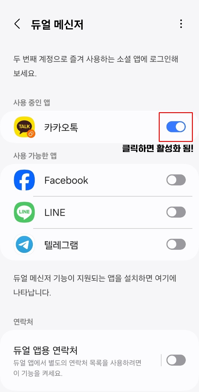 2) 스마트폰 듀얼 메신저 기능 활성화